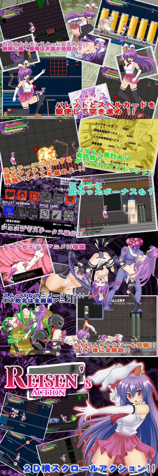 「東方Project」鈴仙・優曇華院・イナバが、師匠の研究所で発生した事故を解決するために奮闘する2D横スクロールアクションゲーム。モンスターやトラップを乗り越えて先を目指すも、力尽きるとミニアニメによる異種姦Hイベントが発生する。